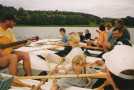 Na Niemnie miejsc do biwakowania pod dostatkiem – zresztą na Litwie można rozbijać się wszędzie. Obozujemy na polanie otoczonej sosnami, a wprost z namiotów roztacza się przed nami panorama Niemna. Po dwóch dniach dopływamy do Nemunajtisu – tutaj kończymy spływ. We wsi, w której znajduje się centrum baloniarstwa, spotykamy grupę z Polski. To spływ Niemnem z Druskiennik do Kowna zorganizowany przez Włocławski Klub Wodniaków (około 200 km.). Polaków spotykaliśmy zresztą już wcześniej, bo rzeki Litwy mają coraz więcej amatorów. Pływają zresztą również Litwini – w niewielkich grupach, swoimi składanymi „taimieniami”.