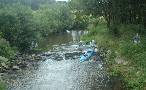 3h od mostu w Kolumnie do zalewu w Łasku. 500m do mostu drogowego Łask – Łódź. Przed mostem kolejny próg z kamieni, przeciągamy kajaki. Rzeka szeroka i płytka. Pod mostem kolejne kamienie utrudniające spływ.