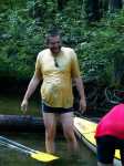 Ponieważ Babant (albo inaczej Tejsówka) budzi skrajne emocje, to parę słów o szlaku. Dla nas – rewelacja! Po leniwych, ale za to nieco zatłoczonych odcinkach szlaku Krutyni wreszcie mieliśmy to, co lubimy najbardziej: przeszkody, płycizny, niewielkie bystrza, całość urozmaicona i urokliwa. Jednak dla kogoś, kto ceni sobie przede wszystkim wygodę i lubi pływać z nogami na burcie, a przeszkód nigdy nie pokonywał, Babant może okazać się prawdziwą udręką – takie właśnie opinie przeczytałam w Internecie. Próbuję je zrozumieć, bo przecież upodobania kajakarzy są rozmaite. Pokonanie szlaku – nieco uciążliwego, choć pokonanie przeszkód nie wydaje sie trudne - z jez. Tejsowo i z powrotem zajęło nam blisko 10 godz., a na biwak dotarliśmy już po zmroku. Warto zaznaczyć, że płynęliśmy pustymi kajakami przy dość niskim stanie wody.