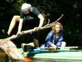 28 lipca na łące za Świdwinem rozpoczęliśmy nasze zmagania z Regą. Choć ze szlakówek i Internetu mieliśmy pewne informacje o tej rzece, to rzeczywistość trochę nas zaskoczyła. Mało wody (nie dało się płynąć Węgorzą), bardzo mało miejsc na biwaki (a było nas 28 osób), przykre łoziny z tonami śmieci (za biwakiem dla "skrzydlatych" kajakarzy) i niezwykle uciążliwe przenoski przy elektrowniach (szczególnie z pełnymi kajakami). Ale też miejscami piękne lasy, szybki nurt, zwalone drzewa, dobre pierogi w Resku i sympatyczni leśnicy. Z powodu ulewnego deszczu nie udało nam się dopłynąć do morza, ale i tak spływ skończył się kąpielą w Bałtyku i szampanem na plaży. Pozdrowienia dla organizatorów i uczestników spływu Mati (www.splywykajakowe.pl), z którymi mijaliśmy się parę razy na trasie.